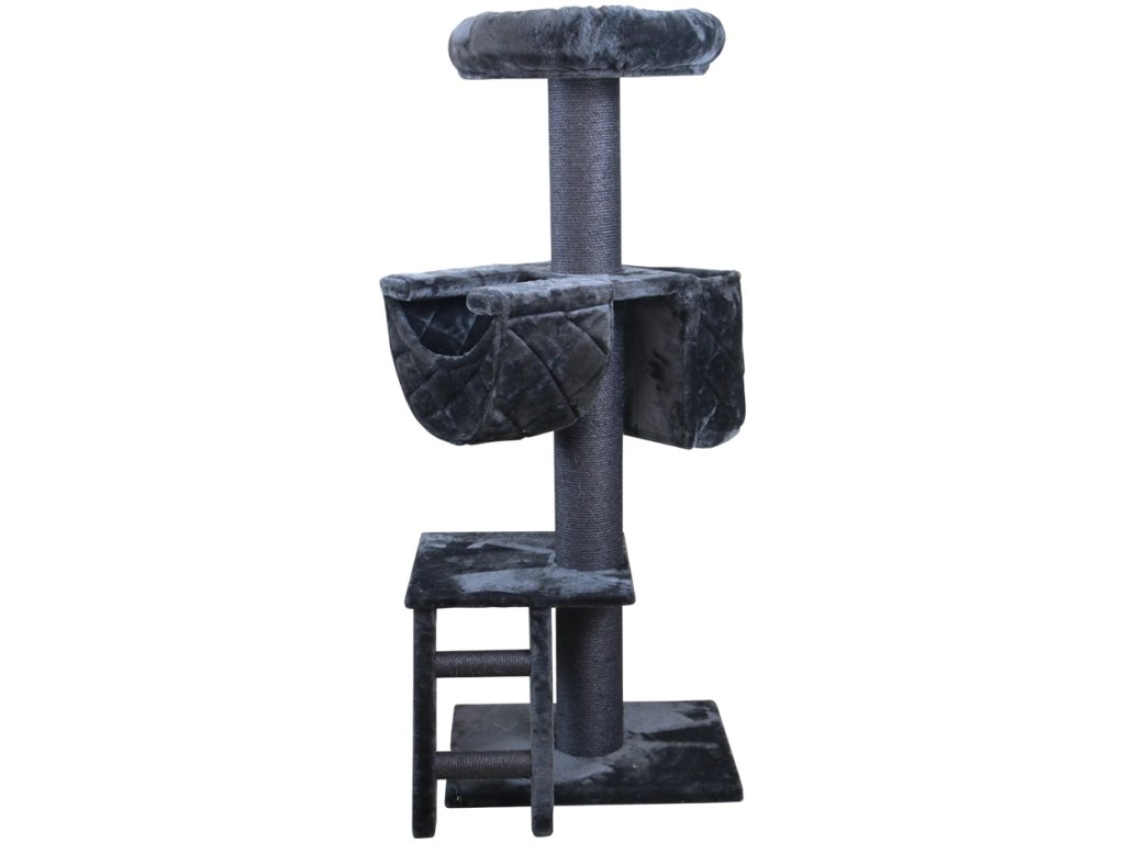 Každá mačka má potrebu brúsiť si svoje pazúriky. Preto by mala mať v byte, kde je chovaná, zodpovedajúcu možnosť túto svoju potrebu realizovať. V opačnom prípade potom bude nútená si nájsť pre pána nepríjemnú alternatívu ako je napr. sedačka, nábytok, kreslo, posteľ či koberec. Parametre škrabadla Juri: výška 158 cm farba tmavo šedá s tmavým sisalom veľkosť sisalových kmeňov ø 15 cm základňa 60 x 45 cm doska nad rebríkom 45 x 45 cm horné odpočívadlo ø 50 x 10 cm vrecko vľavo uprostred 40 x 35 a pevné nemecké škrabadlo Nobby.Dodatočné parametre