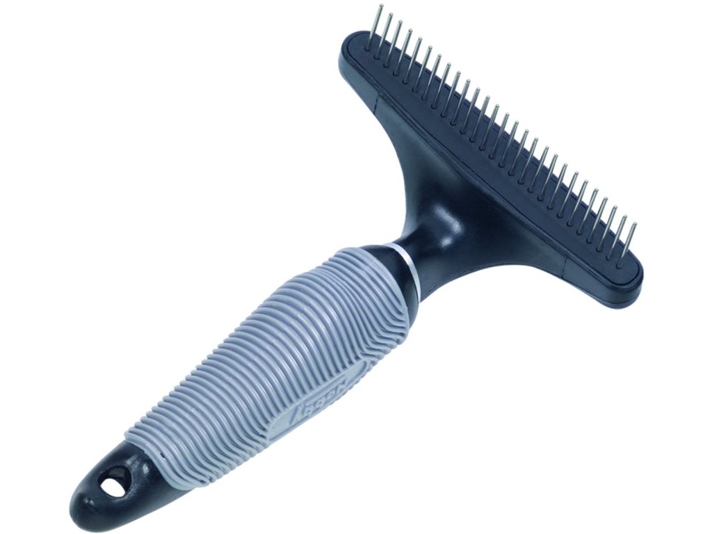 Hodí sa aj na vyčesanie hrubších nečistôt zo srsti. Ergonomická protišmyková rukoväť Určené najmä pre chovateľov dlhosrstých plemien, ktoré potrebujú dennú starostlivosť. Práca s hrablom je veľmi jednoduchá, pre psa príjemná. Netahá srsť a zároveň psovi uľahčí od strapatých chumáčov a odrastenej srsti.Dodatočné parametre