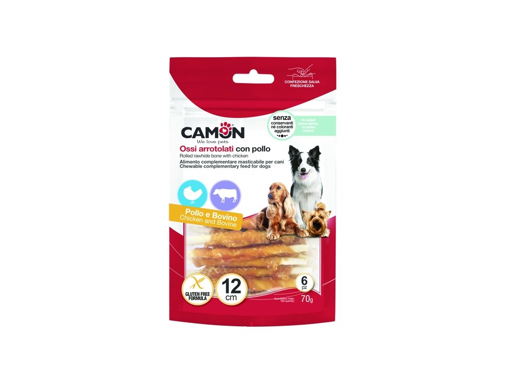 KRÚTENÉ BÔVOLIE TYČINKY S KURACÍM MÄSOM - ŽVÝKACIE DOPLNKOVÉ KRMIVO PRE DOSPELÉ PSYZLOŽENIE: sušená a tepelne upravená surová koža 62 %, kuracie mäso 34 %, kukuričný škrob, (r) TICKÉ ZLOŽKY: Hrubé bielkoviny 69,1 %, vláknina 0,6 %, Hrubý tuk 1,7 %, Hrubý popol 3,0 %, Vlhkosť 17,0 %. Dohliadajte na svojho psa pri žuvaní a vždy mu nechajte misku s čerstvou vodou k dispozícii. Skladujte na chladnom a suchom mieste. Pred použitím odstráňte deoxidátor. Po použití obal uzavrite. Vyrobené a zabalené v továrni so schvaľovacím číslom 3700PF022 Camon SpA
