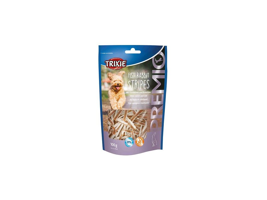 Premio FISH RABBIT STRIPES kúsky s rybou a králikom 100 g