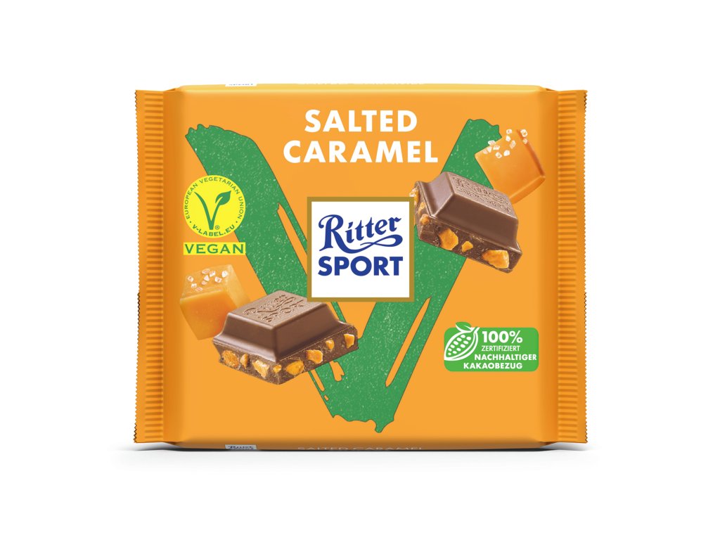 VÝPREDAJ!!!Čokoláda vegán so slaným karamelom 100 g RITTER SPORT