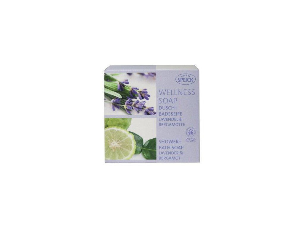 Wellness mýdlo pro celé tělo. Jemné, bohatě pěnící koupelové mýdlo vyrobené z čistých rostlinných olejů s relaxačně-zklidňujícím složením levandulového oleje a stimulujícího oleje z plodů bergamotu. Krémová pěna s hodnotnou vonnou kompozicí čistých esenciálních olejů hýčká pokožku i smysly. Hydratační krém na rostlinné bázi činí mýdlo obzvláště jemným při aplikaci a zanechává pokožku měkkou a pružnou. Vyrobeno podle tradiční receptury mýdla Speick Naturkosmetik s palmovým olejem z udržitelného pěstování certifikovaným RSPO, kokosovým a olivovým olejem. IMýdlo pění i ve studené a vlažné vodě.