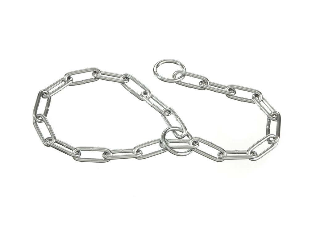 Chromovaný kovový řetízkový obojek s dlouhými články. Stahovací obojek 60 cm.Doplňkové parametry