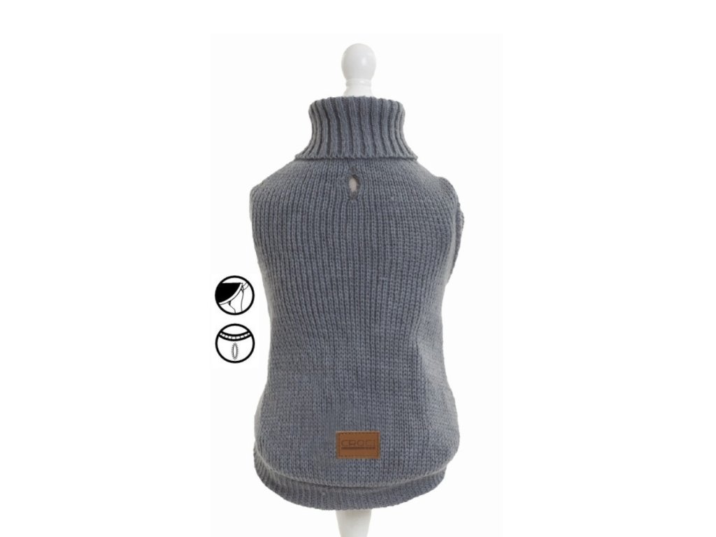 Svetr je vybaven praktickým rolákem, který chrání i krk pejska, a nechybí ani otvor na vodítko na zádech pro snadné připnutí.
