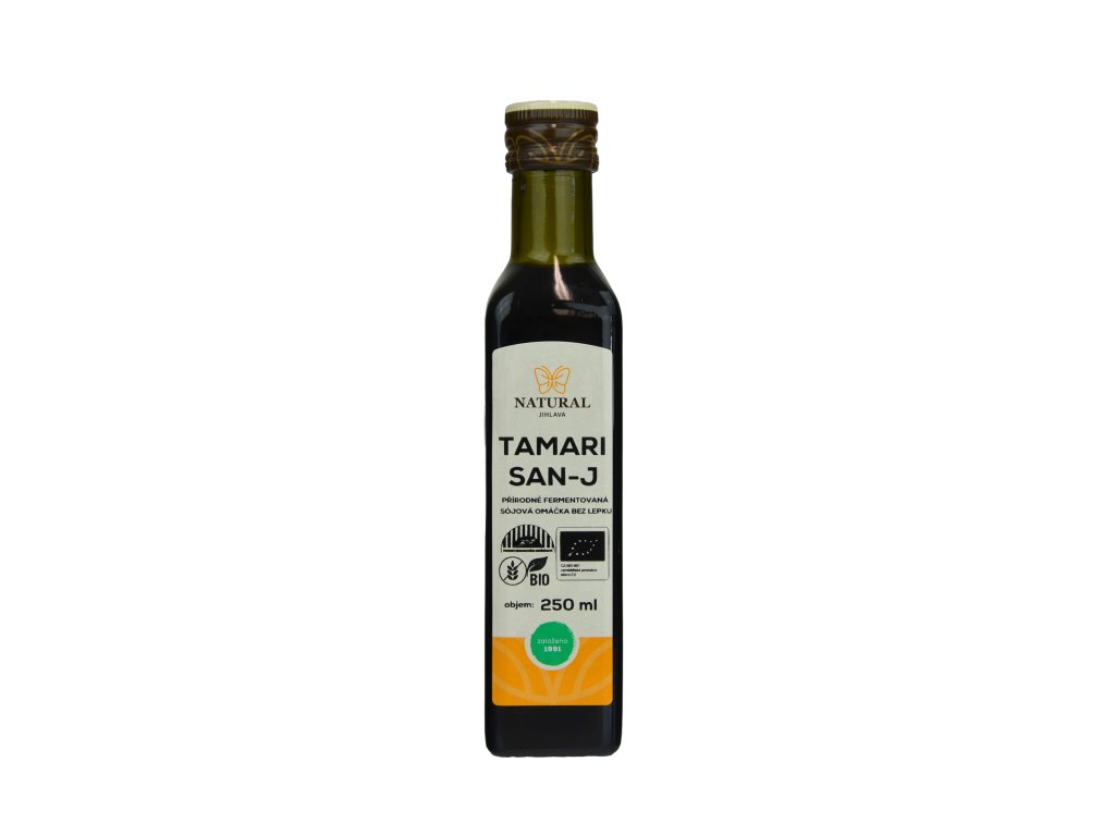 Složení: pitná voda, SÓJOVÉ boby BIO, mořská sůl TAMARI SAN-J BIO je sójová omáčka s tradiční chutí v bio kvalitě, používá se k dochucování pokrmů. Tradiční japonský výrobek v biokvalitě, který se podobně jako shoyu používá k dochucování pokrmů. Tamari na rozdíl od Shoyu má výraznější chuť, hustější konzistenci, tmavší barvu a neobsahuje lepek. Prochází i odlišným výrobním procesem – vzniká při výrobě Misa. Jelikož výtěžnost při výrobě Tamari je mnohem nižší než u Shoyu, odráží se to i ve vyšší ceně. Obsahuje vysoce kvalitní aminokyseliny a mikroorganismy.Nutriční hodnoty