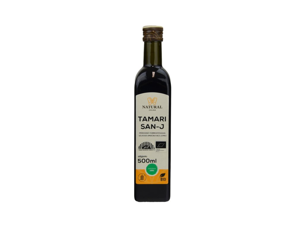 Složení: pitná voda, SÓJOVÉ boby BIO, mořská sůl TAMARI SAN-J BIO je sójová omáčka s tradiční chutí v bio kvalitě, používá se k dochucování pokrmů. Tradiční japonský výrobek v biokvalitě, který se podobně jako shoyu používá k dochucování pokrmů. Tamari na rozdíl od Shoyu má výraznější chuť, hustější konzistenci, tmavší barvu a neobsahuje lepek. Prochází i odlišným výrobním procesem – vzniká při výrobě Misa. Jelikož výtěžnost při výrobě Tamari je mnohem nižší než u Shoyu, odráží se to i ve vyšší ceně. Obsahuje vysoce kvalitní aminokyseliny a mikroorganismy.Nutriční hodnoty