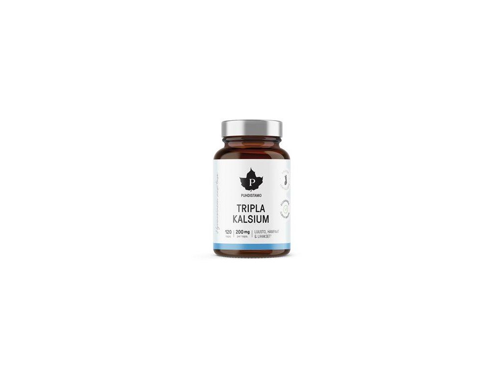 Tripla Calcium obsahuje tři formy vápníku pro co nejefektivnější doplnění tohoto zásadního minerálu do organismu. Uhličitan vápenatý je běžná forma vápníku, která má alkalickou povahu, používá se kromě doplnění vápníku také při refluxu a zmírňuje kyselé prostředí žaludku. Malát vápenatý je organická forma vápníku, kde je vápník spojený chelátovou vazbou s kyselinou jablečnou, a bisglycinát je organická forma spojená s aminokyselinou glycin.