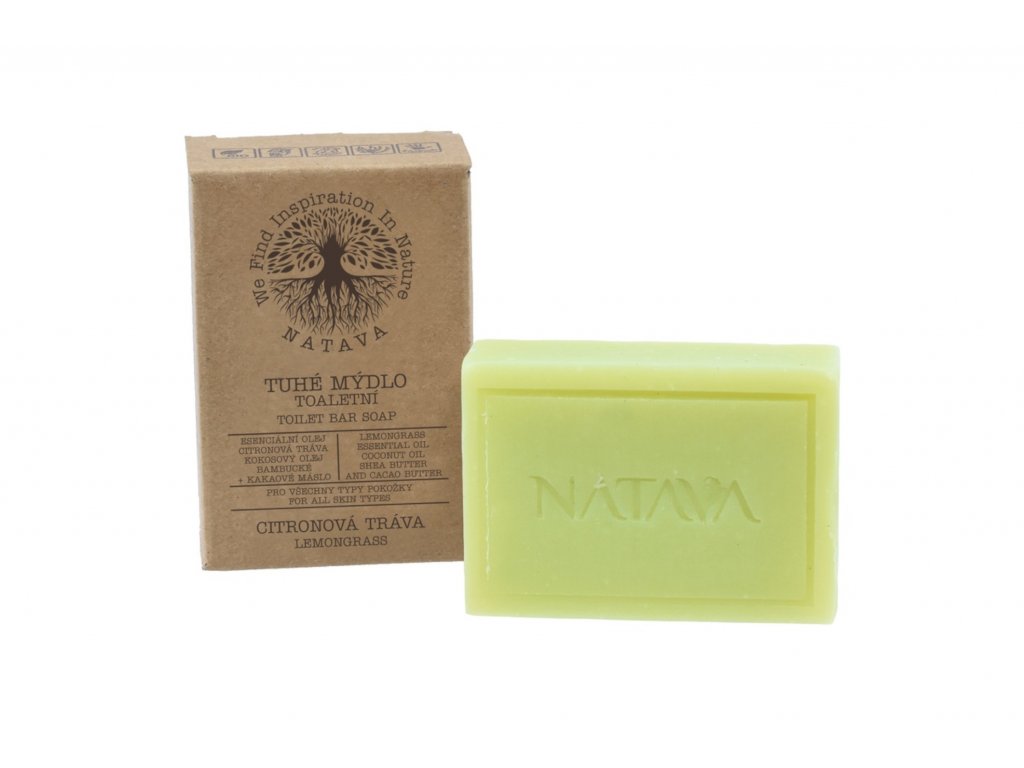 Toto tuhé toaletní mýdlo balené v papírovém obalu je určeno pro všechny typy pokožky. Díky unikátnímu složení, v němž nechybí esenciální olej citronové trávy či kokosový olej, šetrně zbavuje ruce nečistot a zanechává jejich pokožku jemnou, hebkou a zabalenou do osvěžující citrusové vůně. Tuhé toaletní mýdlo zabalené s maximálním ohledem na přírodu a životní prostředí v recyklovatelném papírovém obalu, který vás potěší praktičností i během cestování, obsahuje bohaté přírodní složky. V jeho základu najdete kokosový a olivový olej, kakaové a bambucké máslo, které společně pečují o správnou výživu pokožky. Díky obsahu esenciálního oleje citronové trávy a zvláčňujících složek působí mýdlo pozitivně také na její na harmonizaci a hydrataci. Jedinečné složení zajistí, že po umytí je pokožka rukou hebká a není vysušená. Příroda poskytla cenné složky pro očistu Vašich rukou, Vy se jí za to odměníte tím, že používáním výrobků NATAVA šetříte životní prostředí. Použití: Mýdlo namočte, promněte v dlaních, vzniklou emulzi napěňte v rukou a následně je omyjte čistou vodou. Po aplikaci mýdlo opláchněte od zbytků pěny a uložte na bezpečné místo. Ideálně na kovový rošt či elegantní mýdlenku. Mýdlu můžete opatřit i praktický kovový obal, který se hodí zejména během cestování.Nutriční hodnoty
