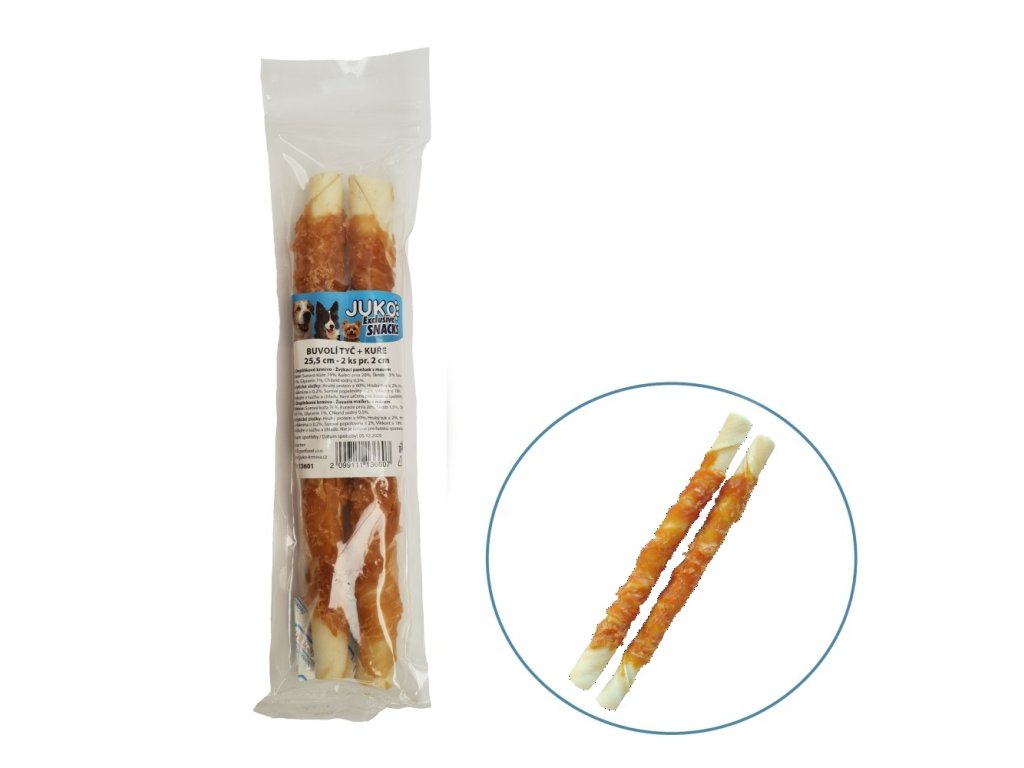 Tyč buvolí obalená kuřecím masem JUKO Snacks 25,5 cm (2 ks)