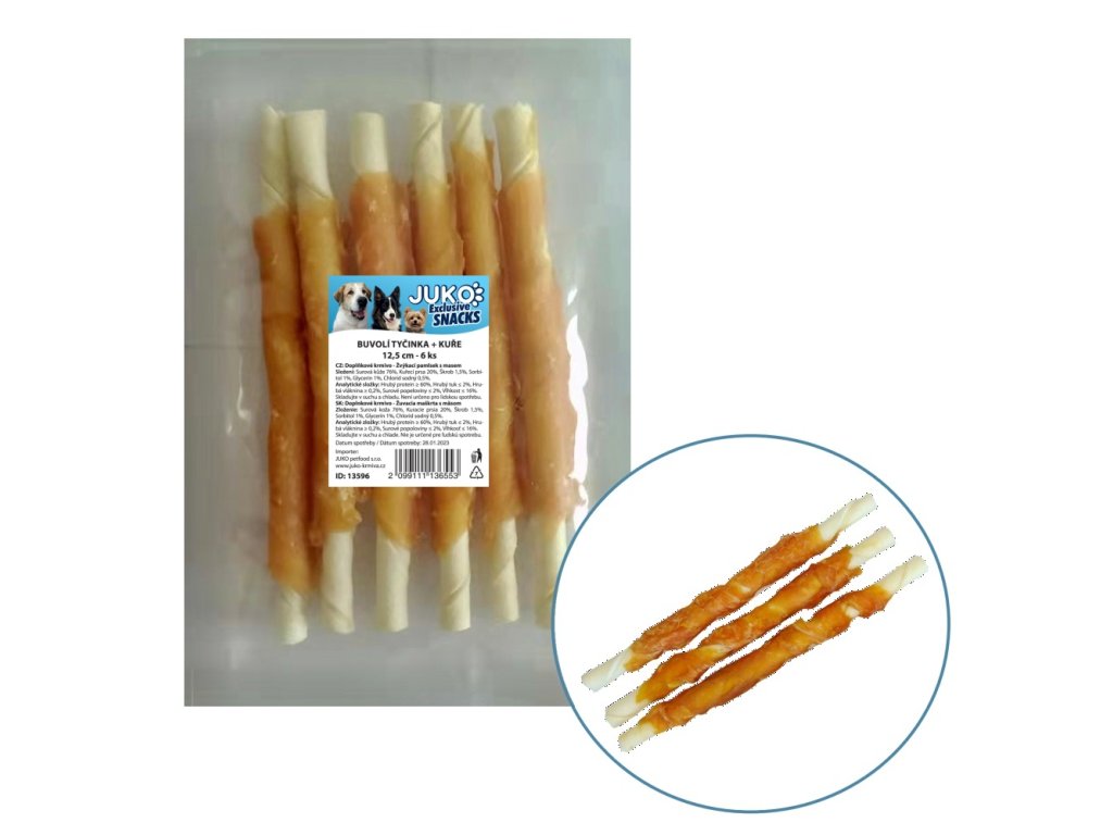 Tyčinka buvolí obalená kuřecím masem JUKO Snacks 12,5 cm (6 ks)
