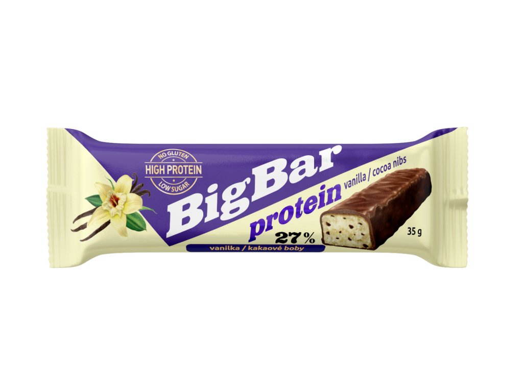 Tyčinka proteinová s vanilkovou příchutí a kakaovými boby v čokoládě - Big Bar 35g