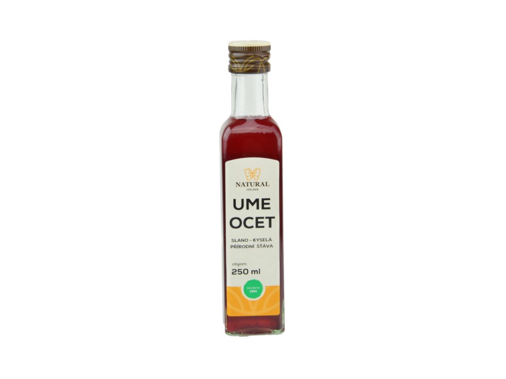 Složení: Ume (japonské švestky), mořská sůl, Shisso (Perilla). Při výrobě (fermentaci) švestiček umeboshi vzniká jako odpadní produkt červená voda ume-su, neboli umeocet. Při moderním způsobu výroby se nakládají nesušené švestky, aby zbylo více tekutiny. Z chemického hlediska ale s octem nemá nic společného. Umeocet má slanokyselou chuť a i když má v názvu slovo ocet spíše nám pokrm osolí než okyselí. Obsahuje velké množství minerálních látek, enzymů a vitamínů ve vstřebatelné podobě. Umeocet používáme v kuchyni na dochucování jakéhokoliv jídla (polévky, omáčky, luštěniny) dá se použít i do salátů a dressinků. Prostě kamkoliv dle fantazie.Nutriční hodnoty