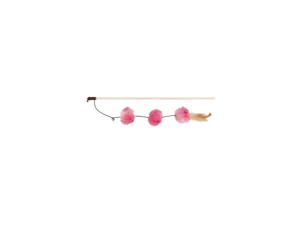 Vábnička/prut s pompon míčky a peřím, 40cm