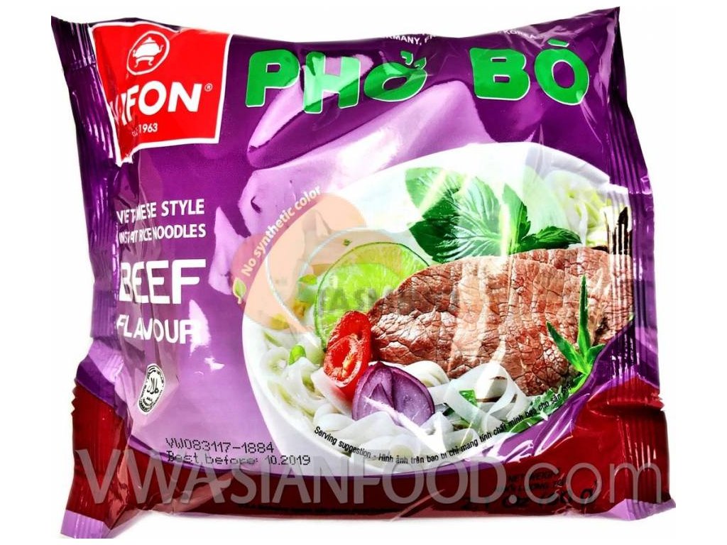 - Složení: Nudle: rýžová mouka, modifikovaný glutamát škrobu, guarová guma E412. Kořenící přísady: sůl, cukr, glutamát E621 , 3-auanylát, 5-inosinát disodný, šalotková příchuť, pepř, skořice, anýzový hřebík * přírodní karamelová barva, E151. z Ithuile: palmový olej, šalotka, umělá příchuť, pepř, skořice, hřebíček, anýz, přírodní karotenový chlorátor, E306. Rostlinné přírůstky: lepek, sušená pažitka, sušený koriandr. Nutriční hodnoty na 100g: Energie 347 kcal / Tuk 3,6g z toho nasycené mastné kyseliny 1,8g / Sacharidy 72,2g z toho cukr 3g / Protein 6,3g / Sůl 6,8g. Alergeny: sója, pšenice. Skladování: Skladujte v suchu a temnu. Země původu: VietnamDoplňkové parametry