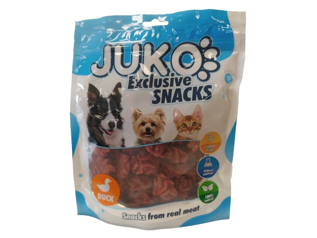 Složení: kachna 85,4 %, škrob 5 %, sorbitol 3 %, glycerin 3 %, rostlinný protein 3 %, sůl 0,5 %, sorban draselný 0,1 %.