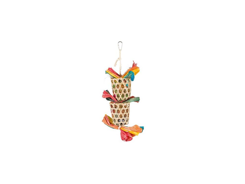 Závěsná hračka košíčky s hnízdícím materiálem pro ptáky 35cm