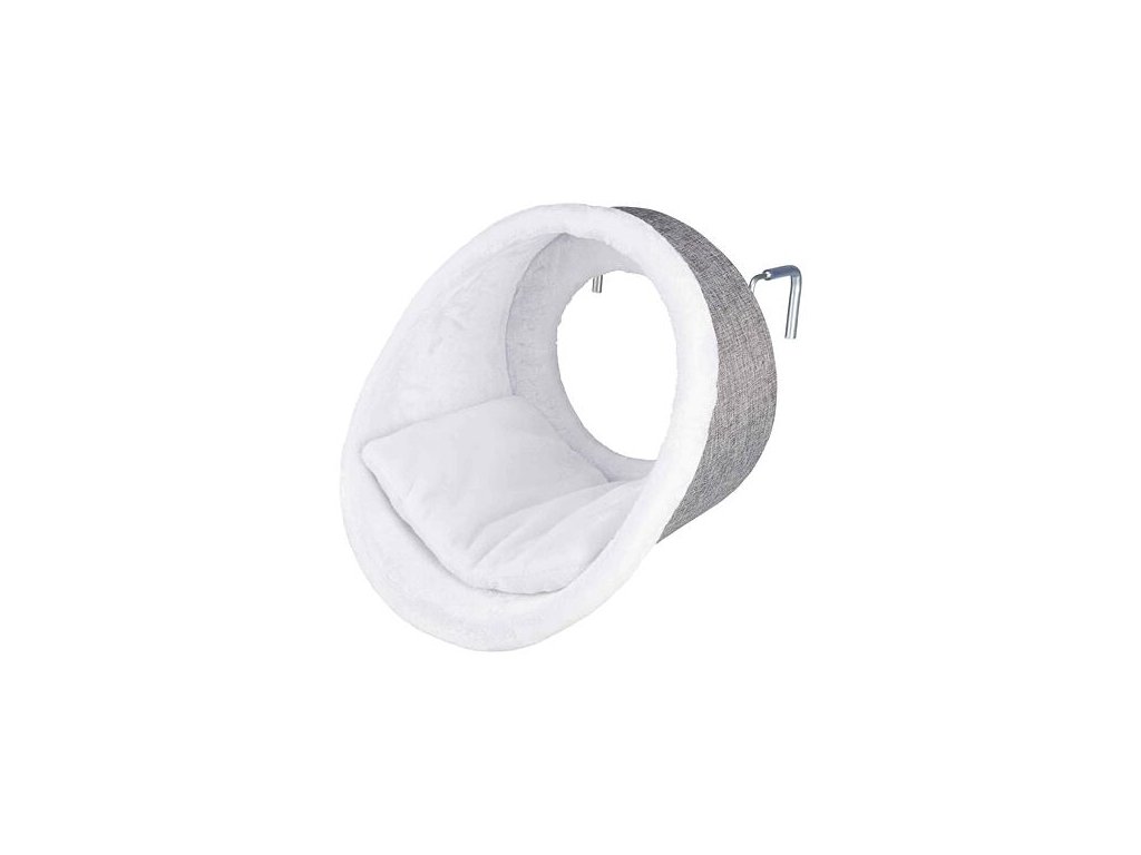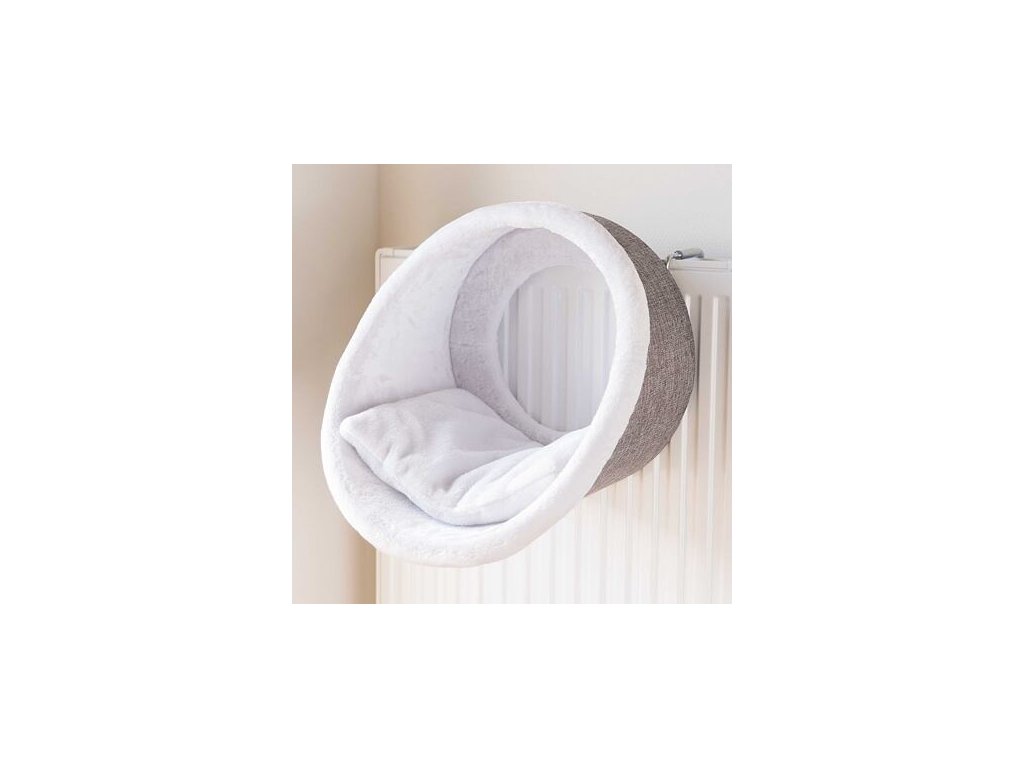 Závěsná plyšová kukaň s polštářem, kulatá, na topení 38x34cm